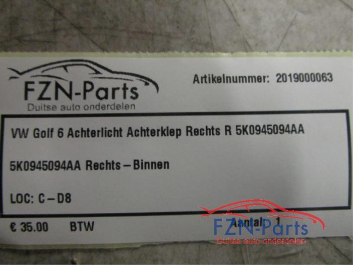 VW Golf 6 Achterlicht Achterklep Rechts R (5K0945094AA)